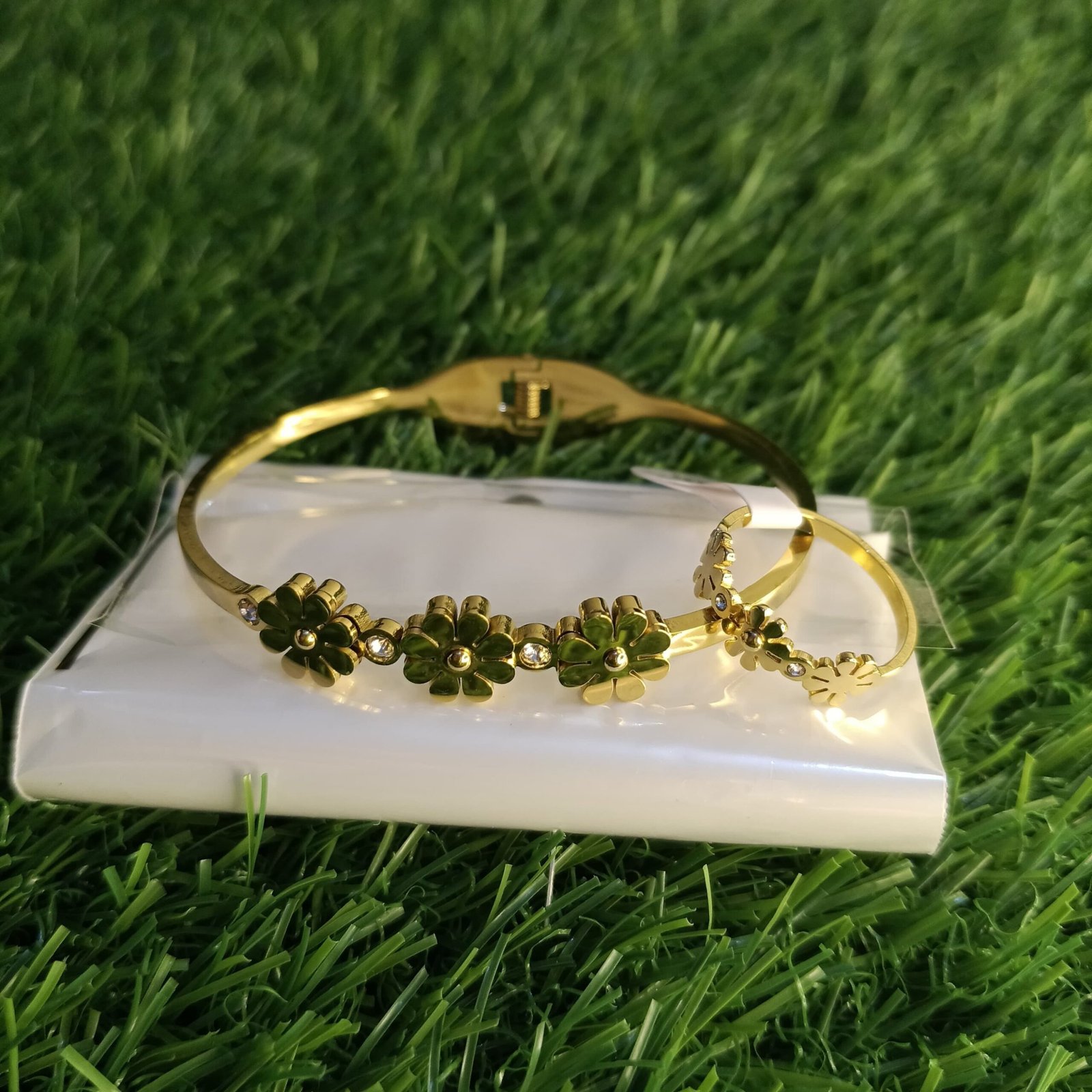 Add a touch of elegance with this floral gold-plated bracelet and ring set. Featuring intricate flower designs and a radiant finish, it’s perfect for special occasions, gifting, or elevating your everyday style.